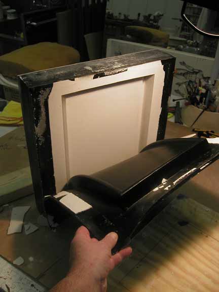 The advantage of and the reason for making a rubber mold is that you use it to produce identical working plaster molds. Below is the rubber mold just after pouring the rubber. It sets overnight...