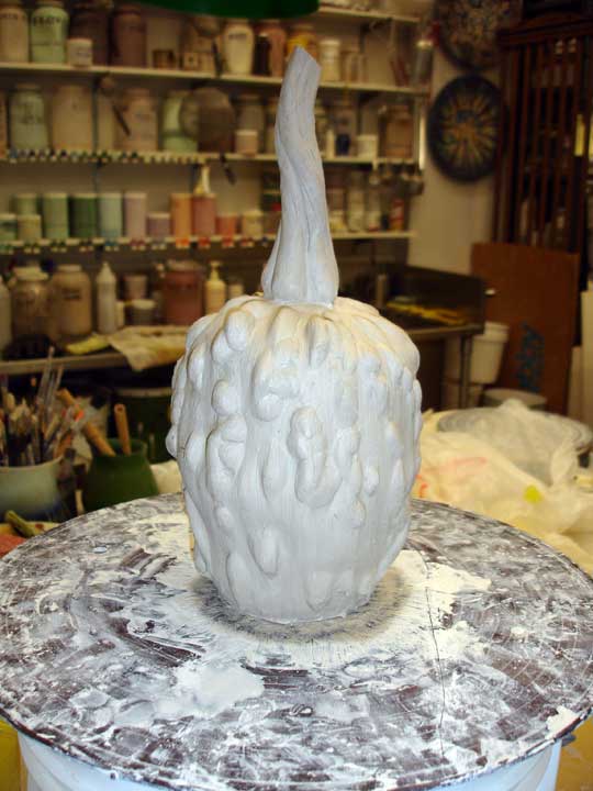 I just dropped glazing and started making some fun and simple pots. Since I have had a number of people inquiring about small gourds, I thought I would make a few. These are fun to make and fun to glaze. And damnit, after that last failure I want to have some fun!